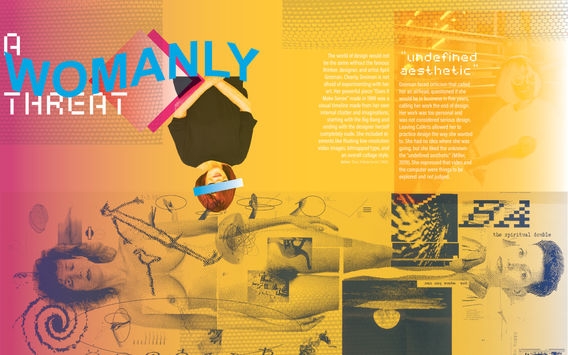 For this project, we first wrote an essay about a famous designer. I wrote about April Greiman, who specializes in the New Wave Style. Using excerpts from our essay, I designed a Design History Book that represents her style, consisting of 4 spreads.